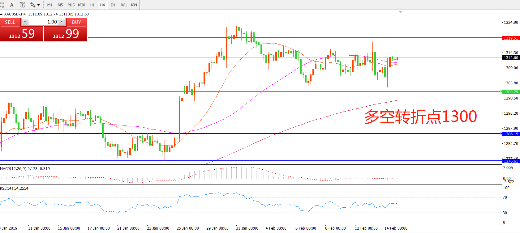 多空转折点:1300.00