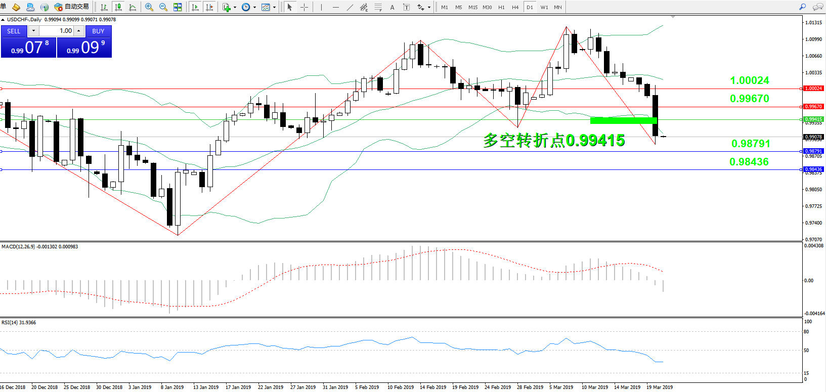 交易策略:0.99415下方看跌,目标0.98791、0.98436
