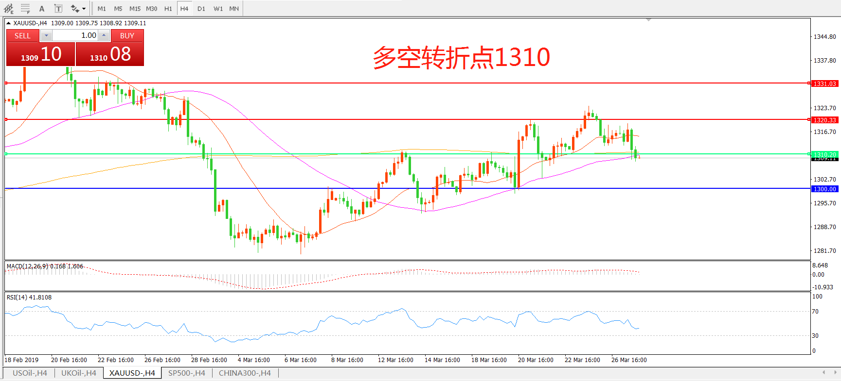 交易策略:在1310.00之上看涨,目标1320.00   1330.00