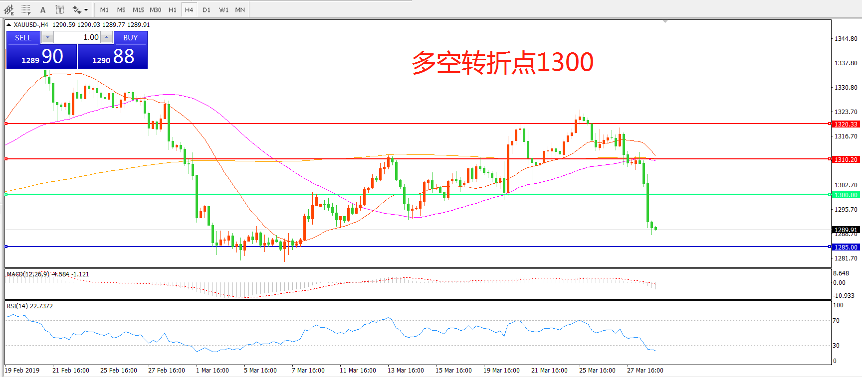 多空转折点:1300.00