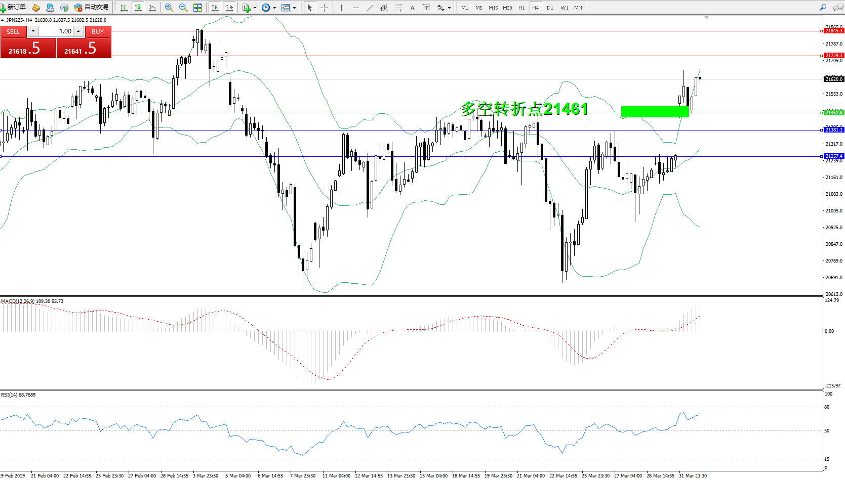 交易策略:21461上方看涨,目标21729、21845
