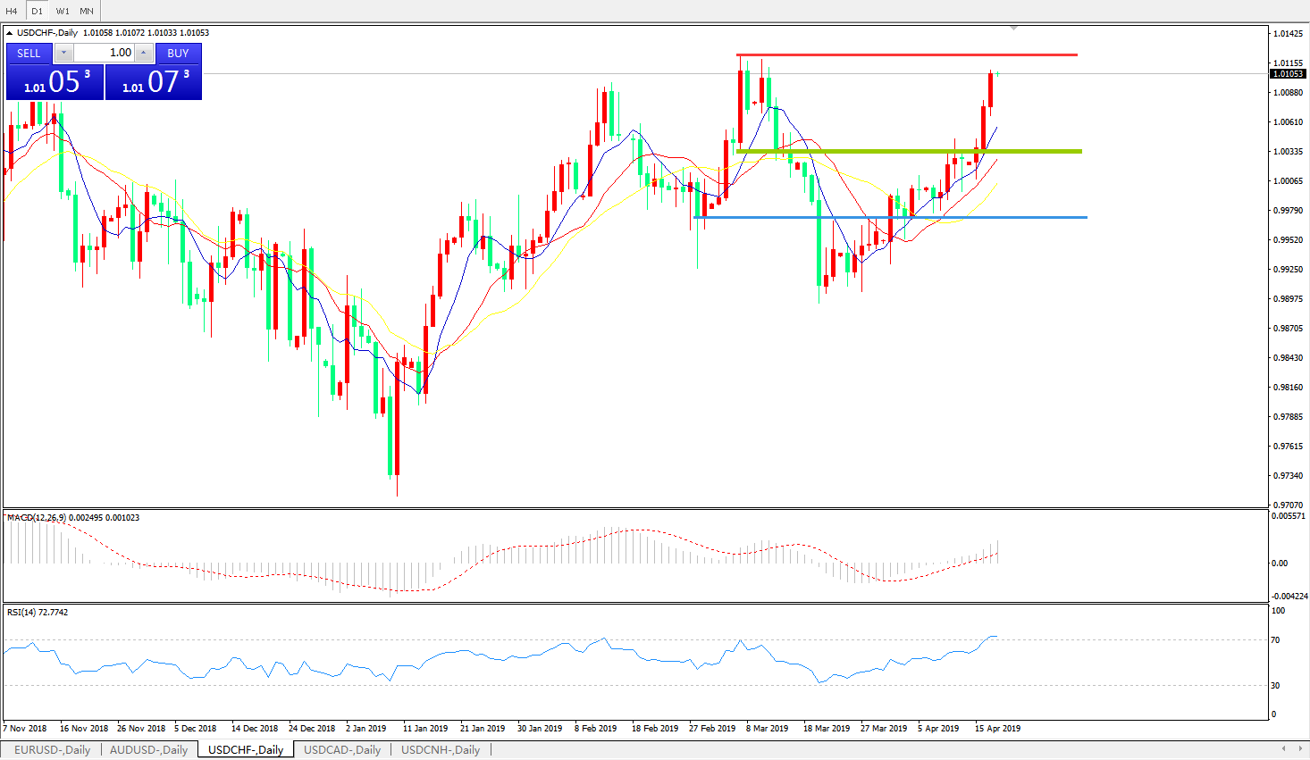 美元兑瑞郎USDCHF 日线图: