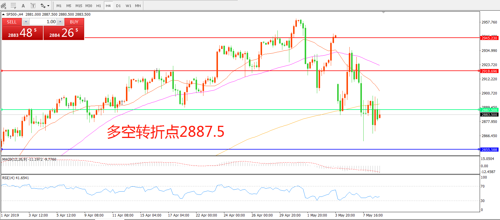 交易策略:在2887.5.之下看跌,目标2855.50 2817.50