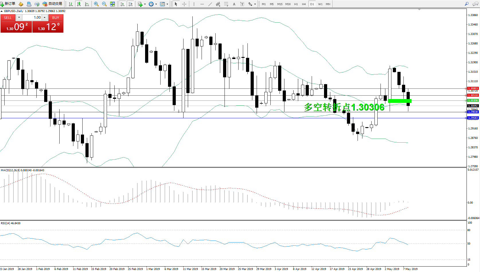 备选策略:1.30306上方看涨,目标1.305181.30803
