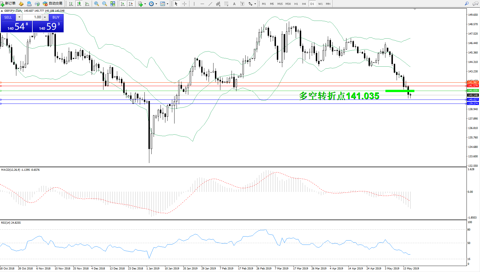 交易策略:141.035下方看跌,目标140.027、139.574