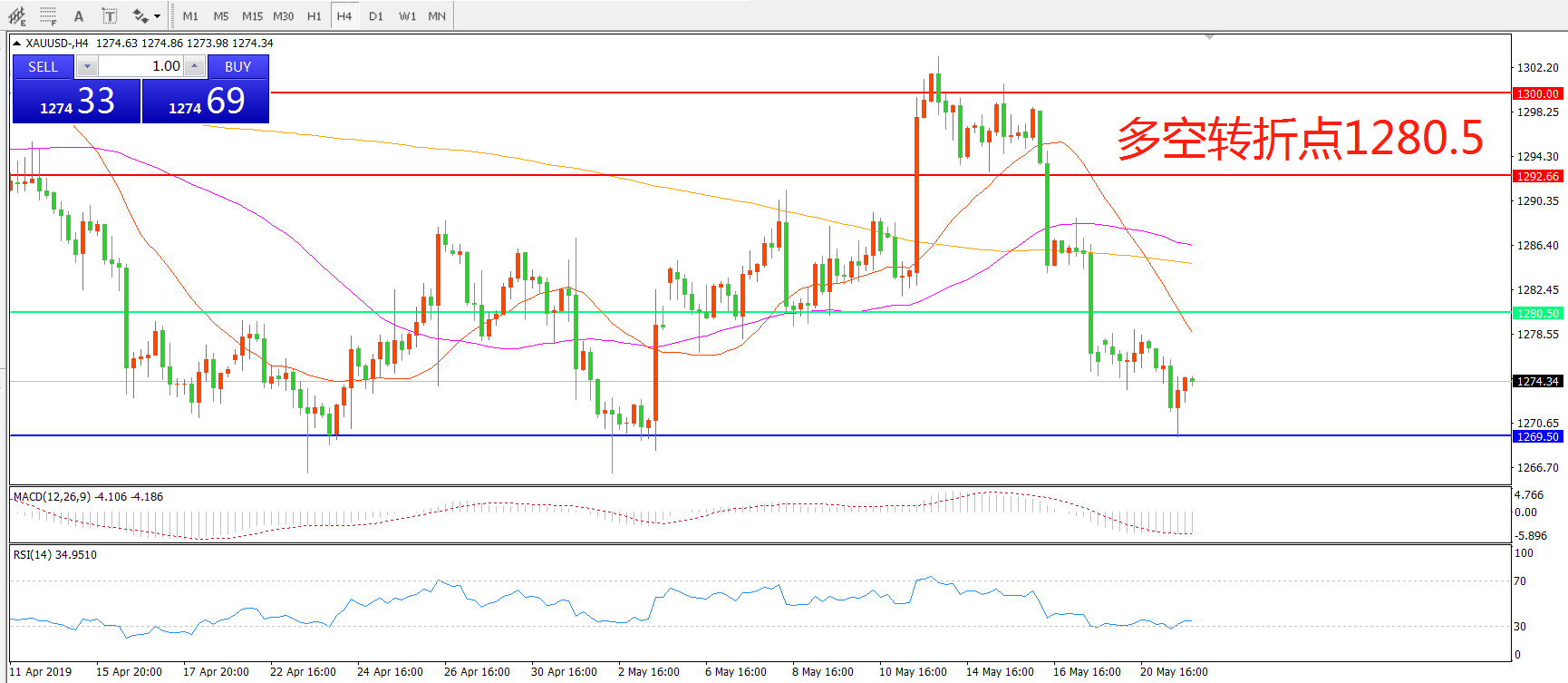 多空转折点:1280.50