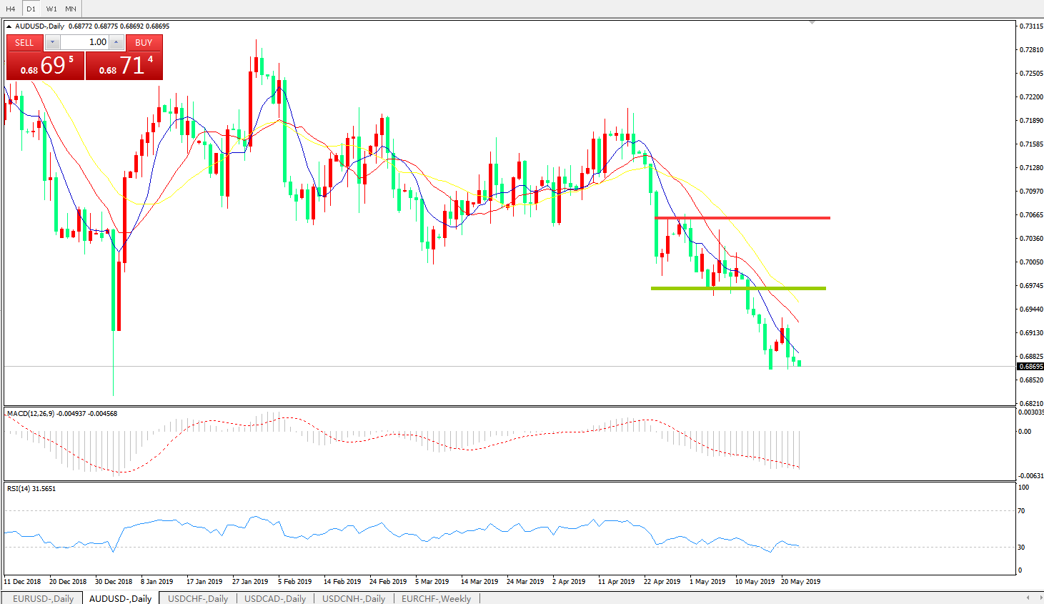 阻力位: 0.7068 0.7205