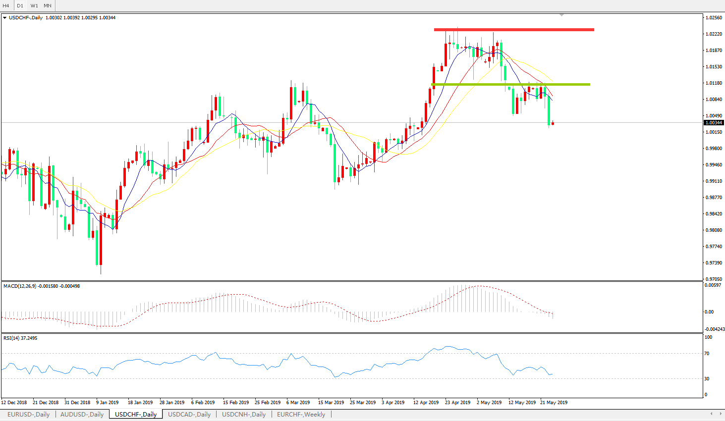 美元兑瑞郎USDCHF 日线图: