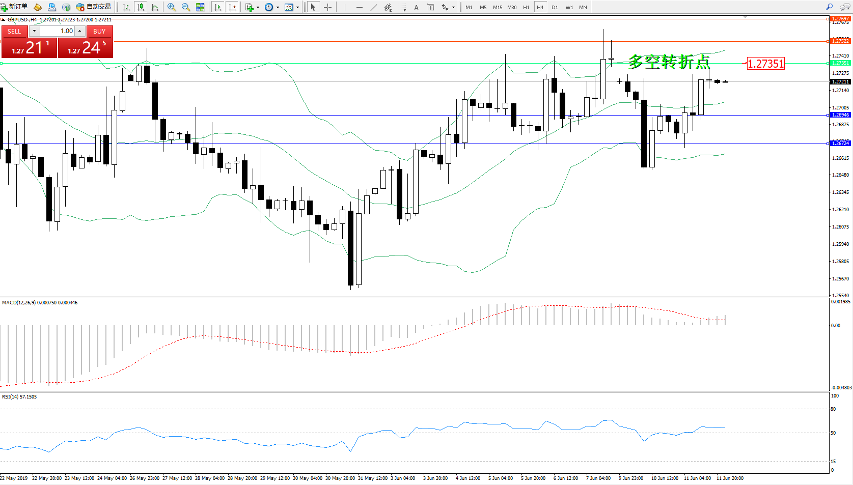 交易策略:1.27351下方看跌,目标1.26946、1.26724