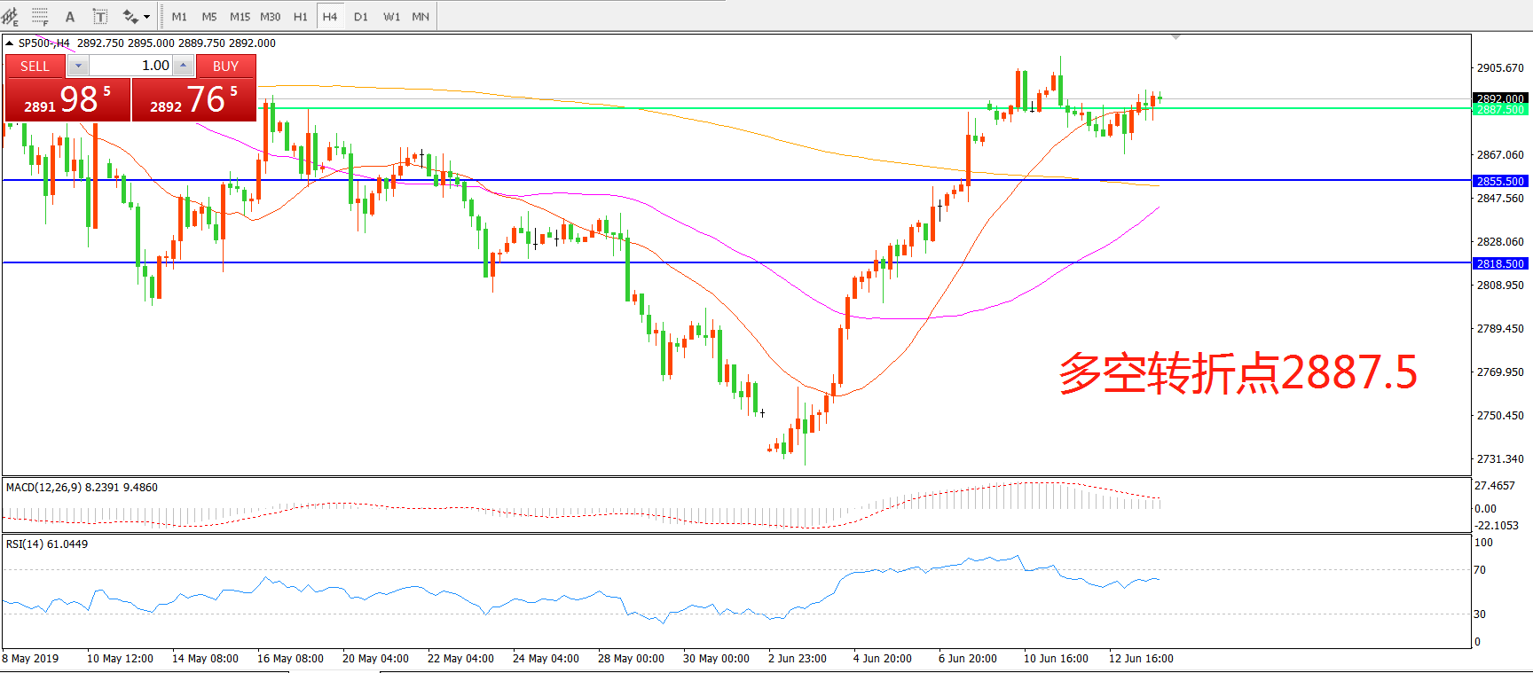 多空转折点:2887.50