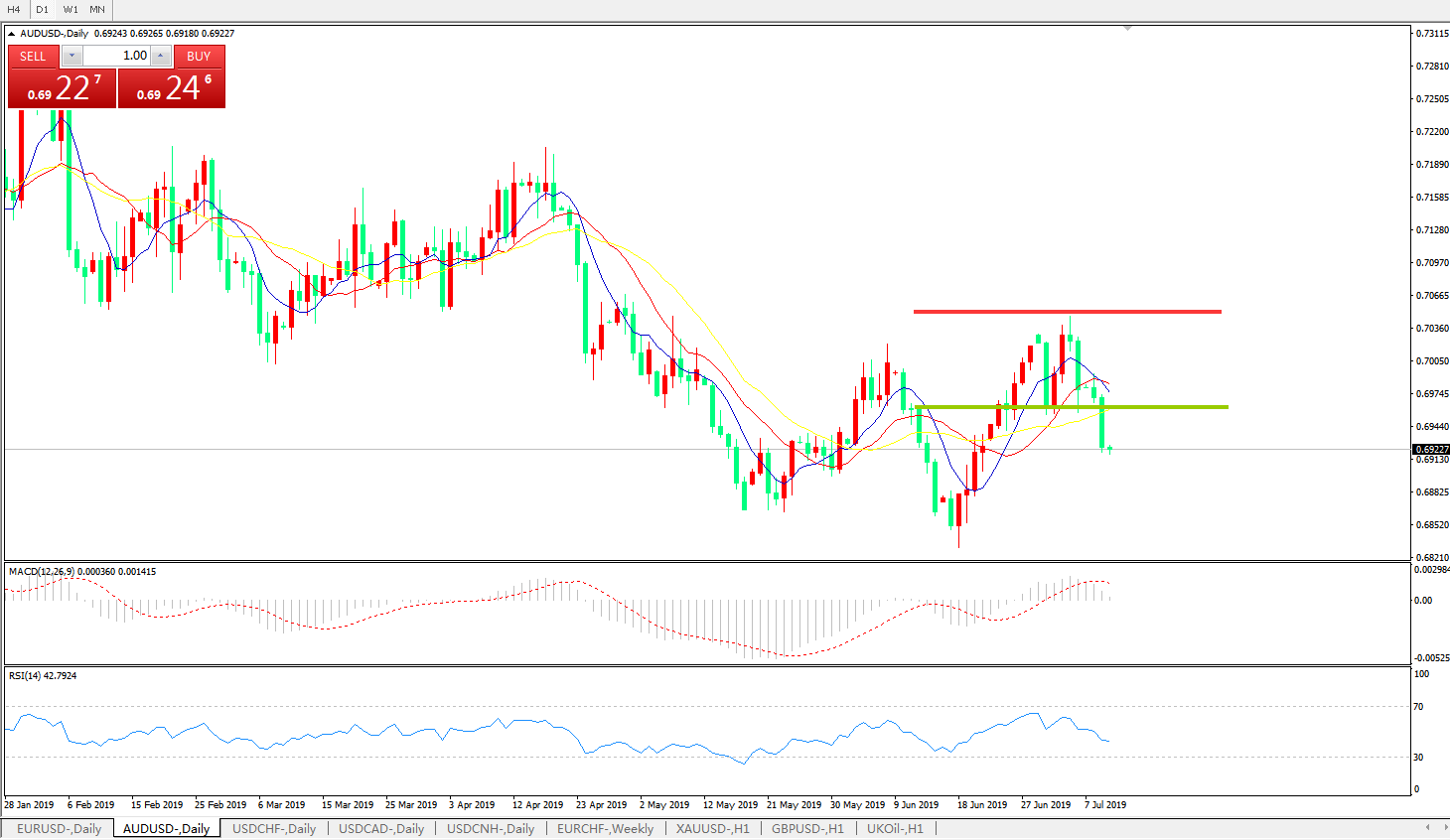 交易策略:0.6960下方看跌,目标0.6860、0.6700