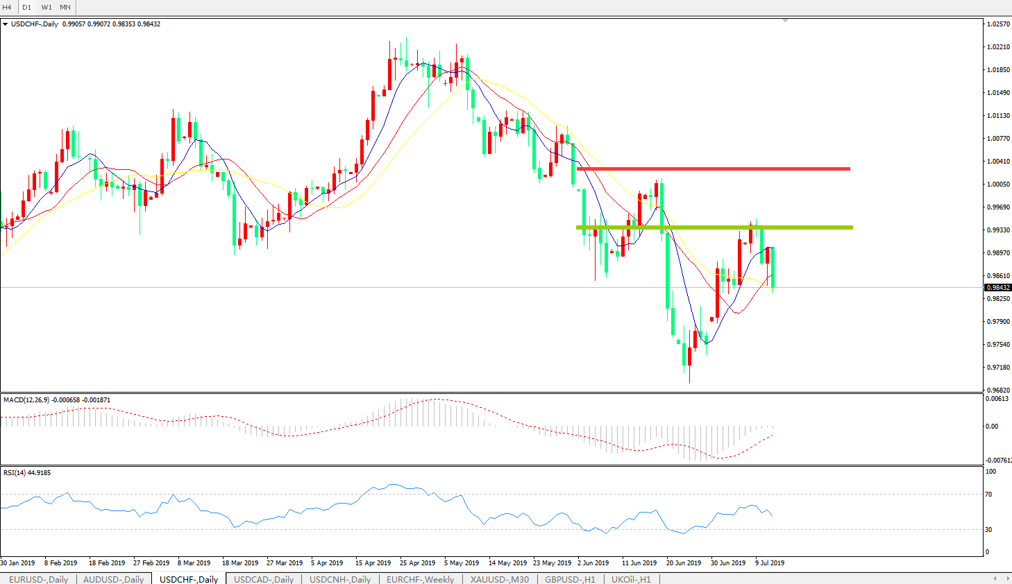 美元兑瑞郎USDCHF 日线图: