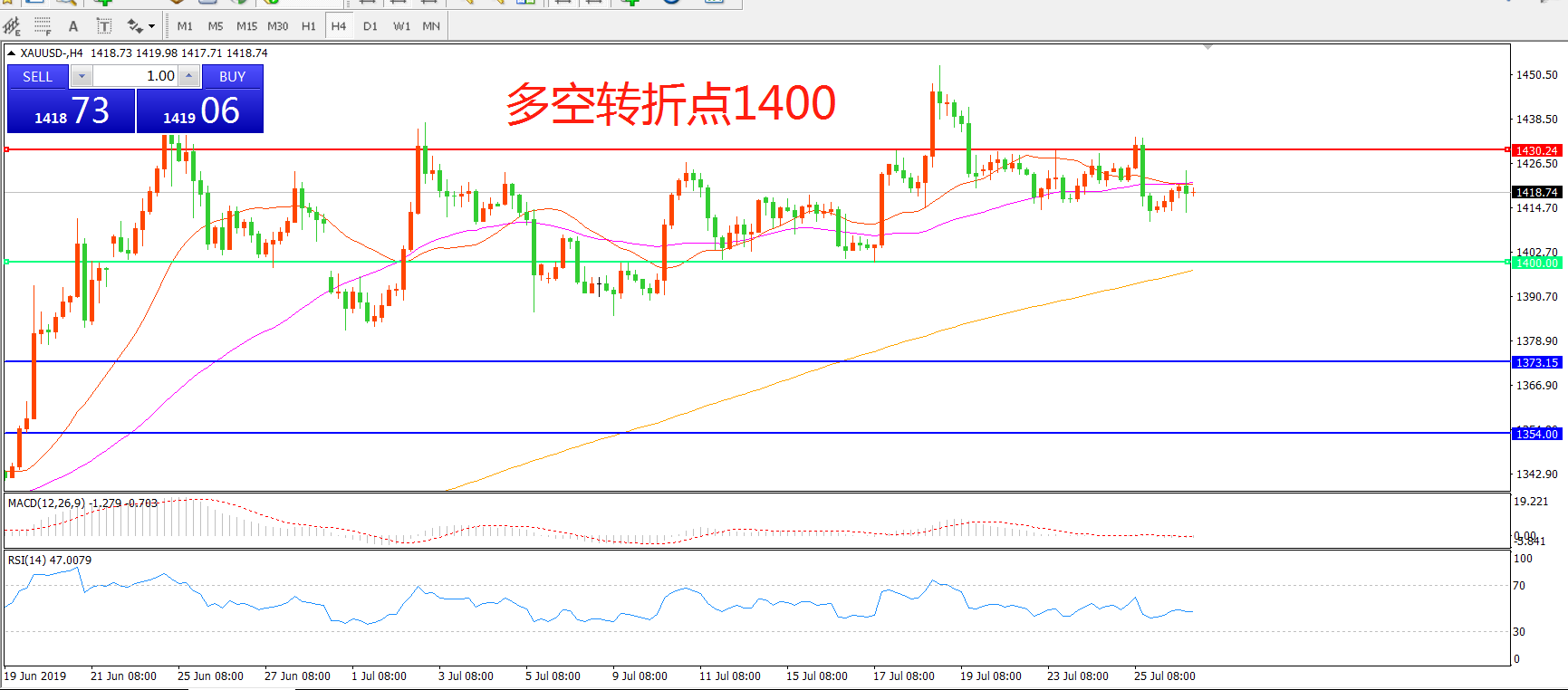 多空转折点:1400.00