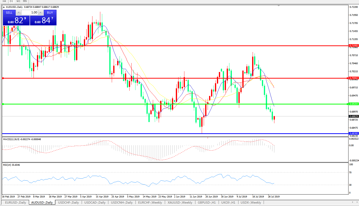 备选策略:0.6920上方看涨,目标0.7000、0.7100