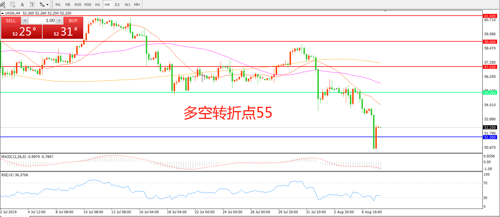 交易策略:在55.00之下看跌,目标51.50  49.50