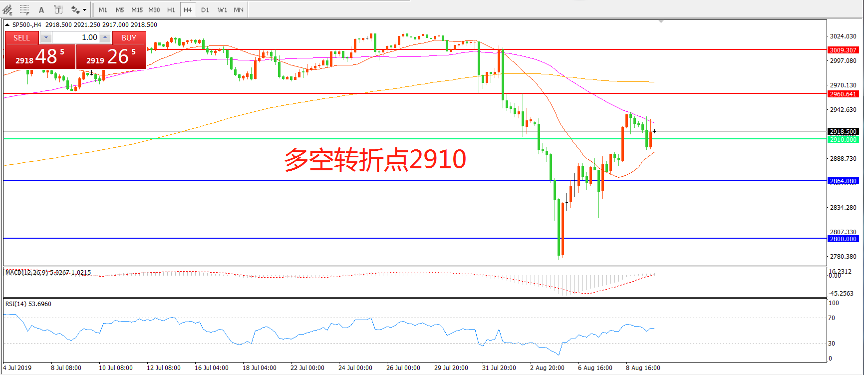 多空转折点:2910.00