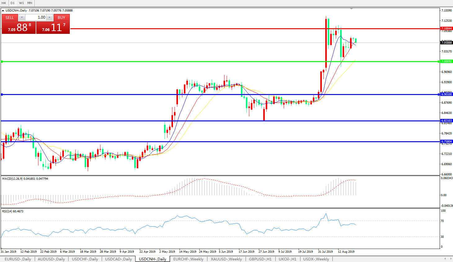 交易策略: 在7.0000之上,看涨,目标价位为7.1000,然后为7.2000。