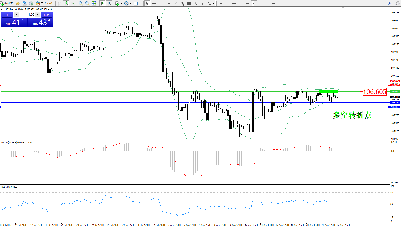 美元兑日元交投于106.6附近,韩国方面表示,将结束与日本之间的军情共享协议,一度提振了避险日元,但美元指数仍交投于三周高位,美联储乔治表示在7月降息后美联储处于中性或平衡宽松状态,支撑了美元兑日元走高,市场开始瞩目本周末的全球央行年会,若各国央行大佬在会议上释放更多宽松预期,那么在日本央行可用宽松措施已经几近耗尽的状况下,日元汇价将再度首当其冲,面临大幅上行压力。