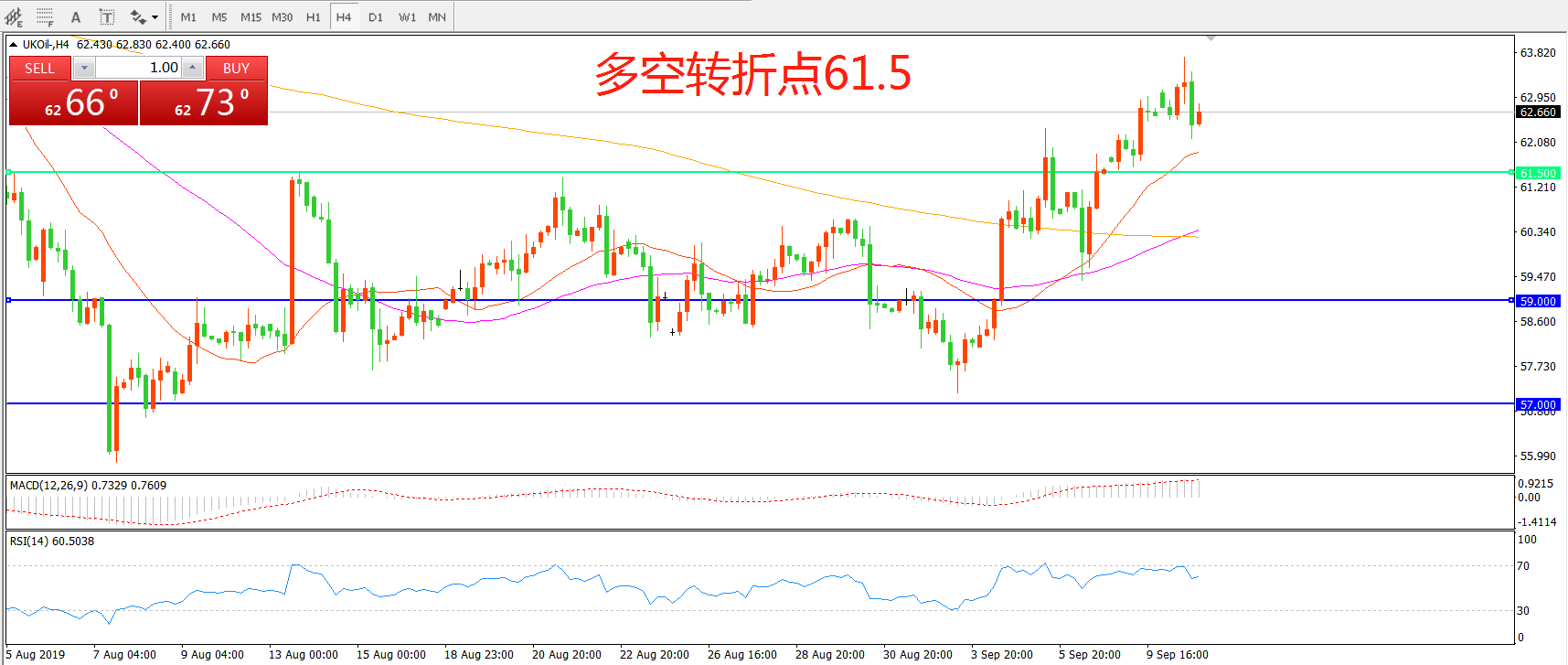 多空转折点:61.50