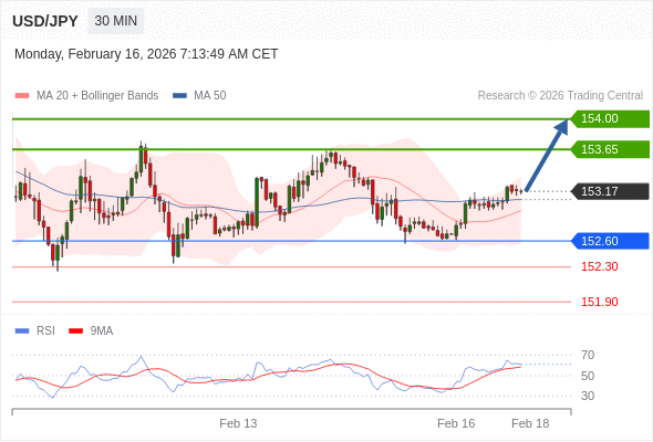 在 152.60 之上,看涨,目标价位为 153.65 ,然后为 154.00 。