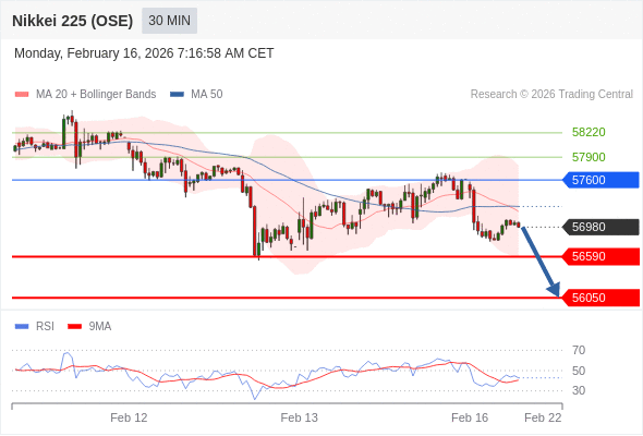 在 57600 之下,看跌,目标价位为 56590 ,然后为 56050 。