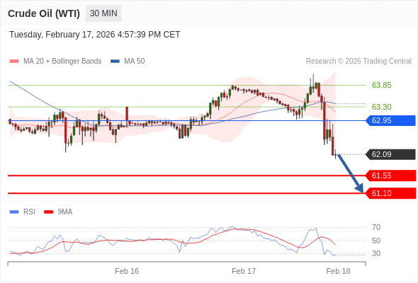 在 62.95 之下,看跌,目标价位为 61.55 ,然后为 61.10 。