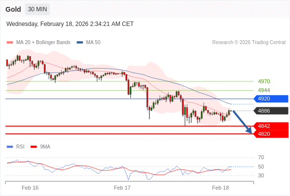 在 4920 之下,看跌,目标价位为 4842 ,然后为 4820 。