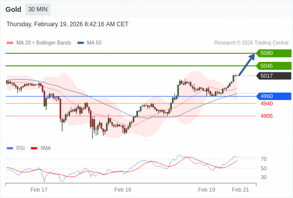 在 4960 之上,看涨,目标价位为 5045 ,然后为 5080 。