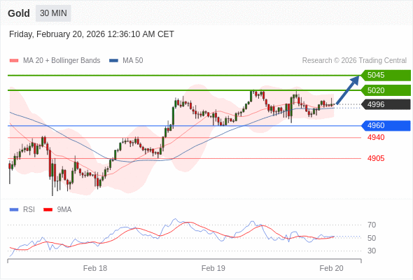 在 4960 之上,看涨,目标价位为 5020 ,然后为 5045 。
