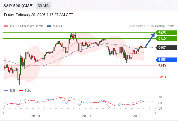 在 6855 之上,看涨,目标价位为 6910 ,然后为 6925 。