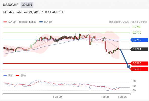 交易策略: 在 0.7750 之下,看跌,目标价位为 0.7685 ,然后为 0.7670 。