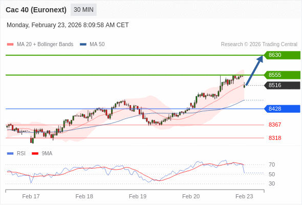 在 8428 之上,看涨,目标价位为 8555 ,然后为 8630 。