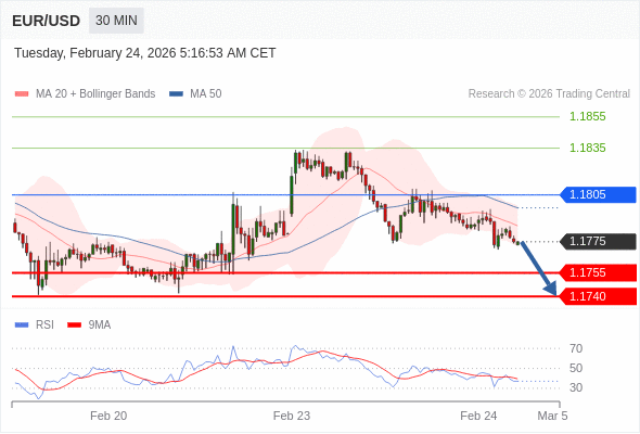 在 1.1805 之下,看跌,目标价位为 1.1755 ,然后为 1.1740 。