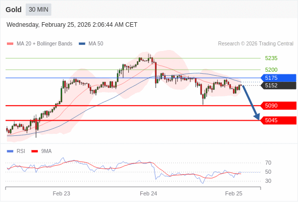 在 5175 之下,看跌,目标价位为 5090 ,然后为 5045 。