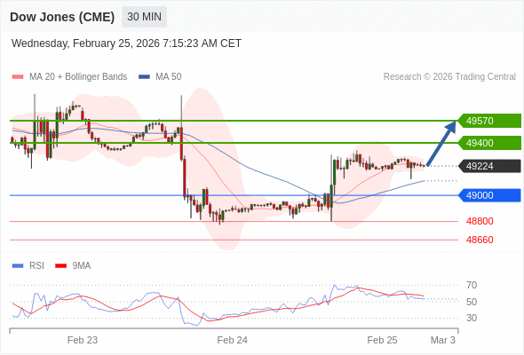 在 49000 之上,看涨,目标价位为 49400 ,然后为 49570 。