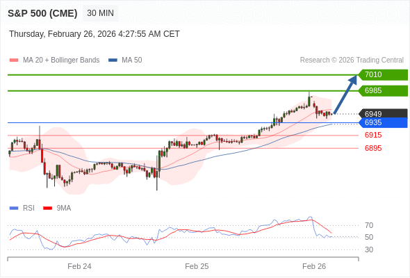 在 6935 之上,看涨,目标价位为 6985 ,然后为 7010 。