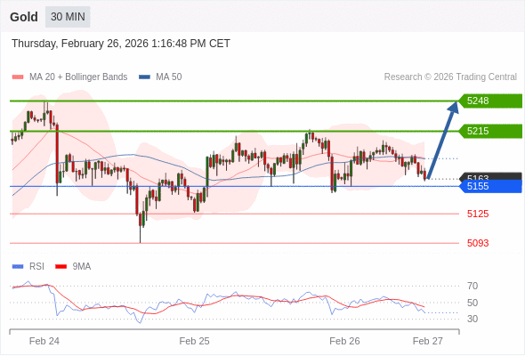 在 5155 之上,看涨,目标价位为 5215 ,然后为 5248 。