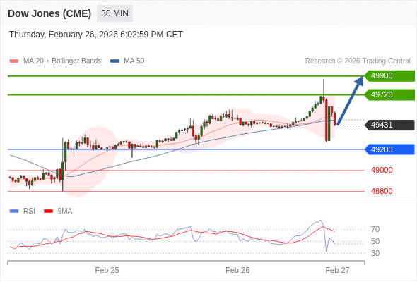 在 49200 之上,看涨,目标价位为 49720 ,然后为 49900 。