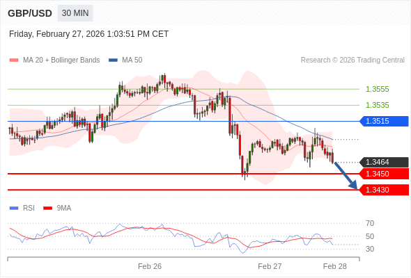 在 1.3515 之下,看跌,目标价位为 1.3450 ,然后为 1.3430 。