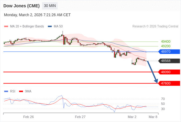 在 48970 之下,看跌,目标价位为 48090 ,然后为 47600 。