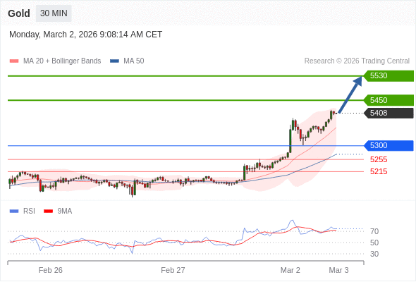 在 5300 之上,看涨,目标价位为 5450 ,然后为 5530 。