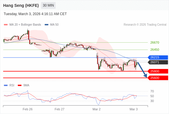 在 26215 之下,看跌,目标价位为 25800 ,然后为 25600 。