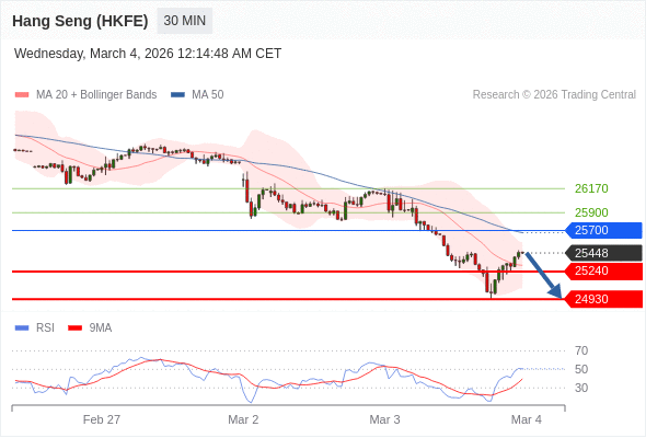 在 25700 之下,看跌,目标价位为 25240 ,然后为 24930 。