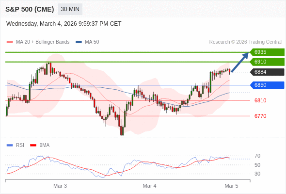 在 6850 之上,看涨,目标价位为 6910 ,然后为 6935 。