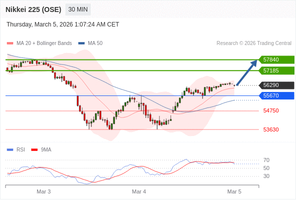 日经225股指期货 (OSE) 当日内: 目标位为57840。