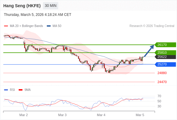 在 25270 之上,看涨,目标价位为 25810 ,然后为 26170 。