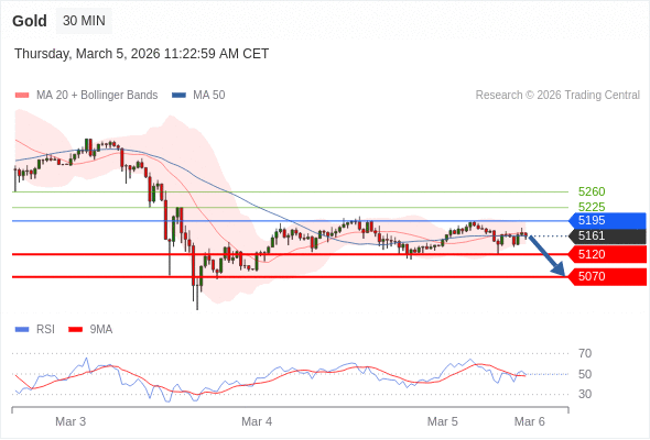 在 5195 之下,看跌,目标价位为 5120 ,然后为 5070 。