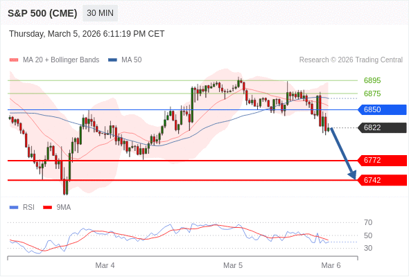 在 6850 之下,看跌,目标价位为 6772 ,然后为 6742 。