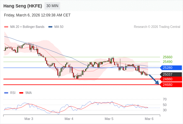 在 25280 之下,看跌,目标价位为 24880 ,然后为 24680 。