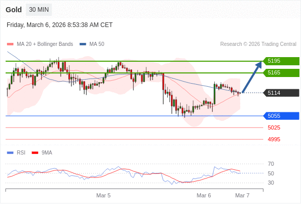 在 5055 之上,看涨,目标价位为 5195 ,然后为 5225 。